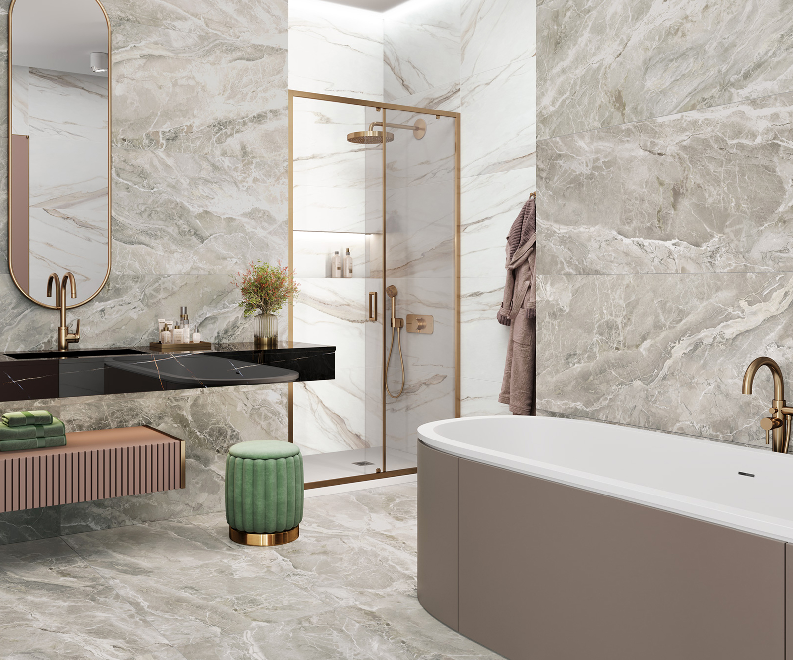Коллекция ректифицированного керамогранита Frapucino представлена в теплых оттенках в поверхности sugar со спецэффектом carving. Это интерпретация натурального итальянского мрамора Фраппучино, который отличается разнообразием оттенков в слебе. Дизайнеры бренда Delacora вдохновились красотой и многогранностью переходящих цветов из одних прожилок в другие и создали великолепные дизайны с этой плиткой.