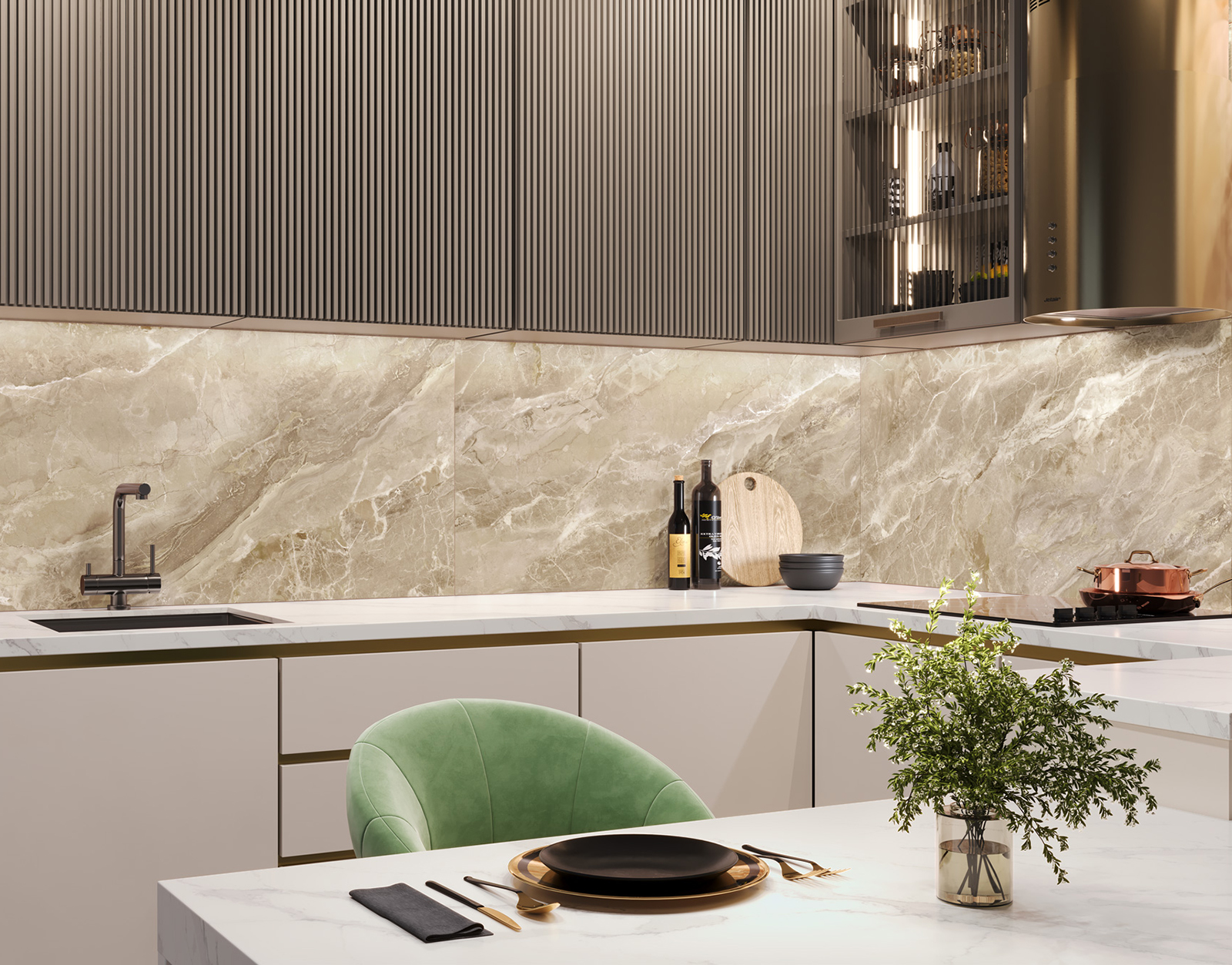 Коллекция ректифицированного керамогранита Frapucino представлена в теплых оттенках в поверхности sugar со спецэффектом carving. Это интерпретация натурального итальянского мрамора Фраппучино, который отличается разнообразием оттенков в слебе. Дизайнеры бренда Delacora вдохновились красотой и многогранностью переходящих цветов из одних прожилок в другие и создали великолепные дизайны с этой плиткой.