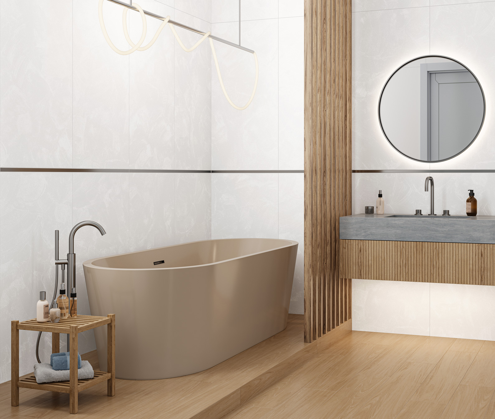 Коллекция ректифицированного керамогранита с текстурой декоративной штукатурки произведена в четырех универсальных цветах, в качестве компаньона выступает моноколор в белом цвете. Цвета, которые можно использовать в различных дизайнерских задумках и решениях, делая акценты на стиле, мебели, интерьерных деталях. Ректифицированный край позволяет сделать укладку с минимальным швом, поверхность sugar со спецэффектом carving подчеркивают штрихи на плитке.