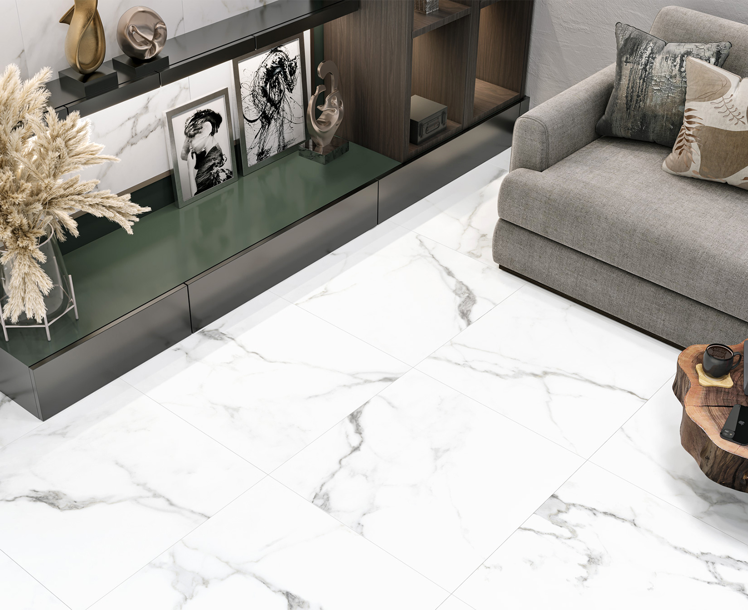 Это ректифицированный керамогранит с сахарной поверхностью, имеющий классическую благородную текстуру итальянского мрамора калакатта. Белый фон с крупными дымчатыми серыми прожилками смотрится эффектно в интерьере. Аристократичный узор белого мрамора в сочетании с деревом, штукатуркой и металлическими аксессуарами позволит создать уникальный современный интерьер. Он идеально подойдет для ванных комнат, кухонного фартука, в качестве напольного покрытия для домашнего интерьера или для общественных пространств.