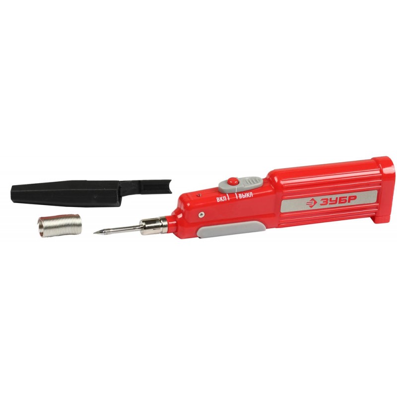 Используется для установки электронных составляющих на плату и пайки проводников при помощи припоя, который входит в комплект. Беспроводной паяльник ЗУБР изготовлен для осуществления работы в тех местах, где возможность подключиться к сети 220В отсутствует, например, произвести паяльные работы в расположенной достаточно высоко распаячной коробке, припаять провод в сарае, на даче, в гараже или электрическом щитке. Может использоваться для проведения работы с проводкой автотранспорта, для мастеров-электриков, радиомонтажников и автолюбителей.