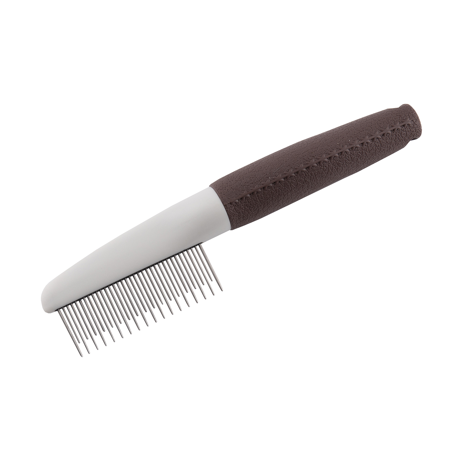 Расческа для животных разнозубая сочетает зубья различной длины и эффективно удаляет выпавшие волоски из шерсти и подшерстка. Закругленные концы зубьев исключают появление повреждений или царапин на коже Вашего питомца. Процедура вычесывания обеспечит легкий массаж, стимулирует кровообращение и сделает шерсть животного здоровой и блестящей.