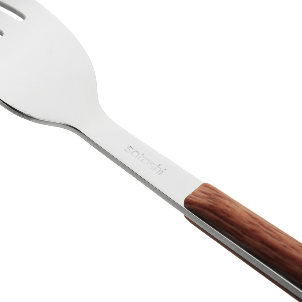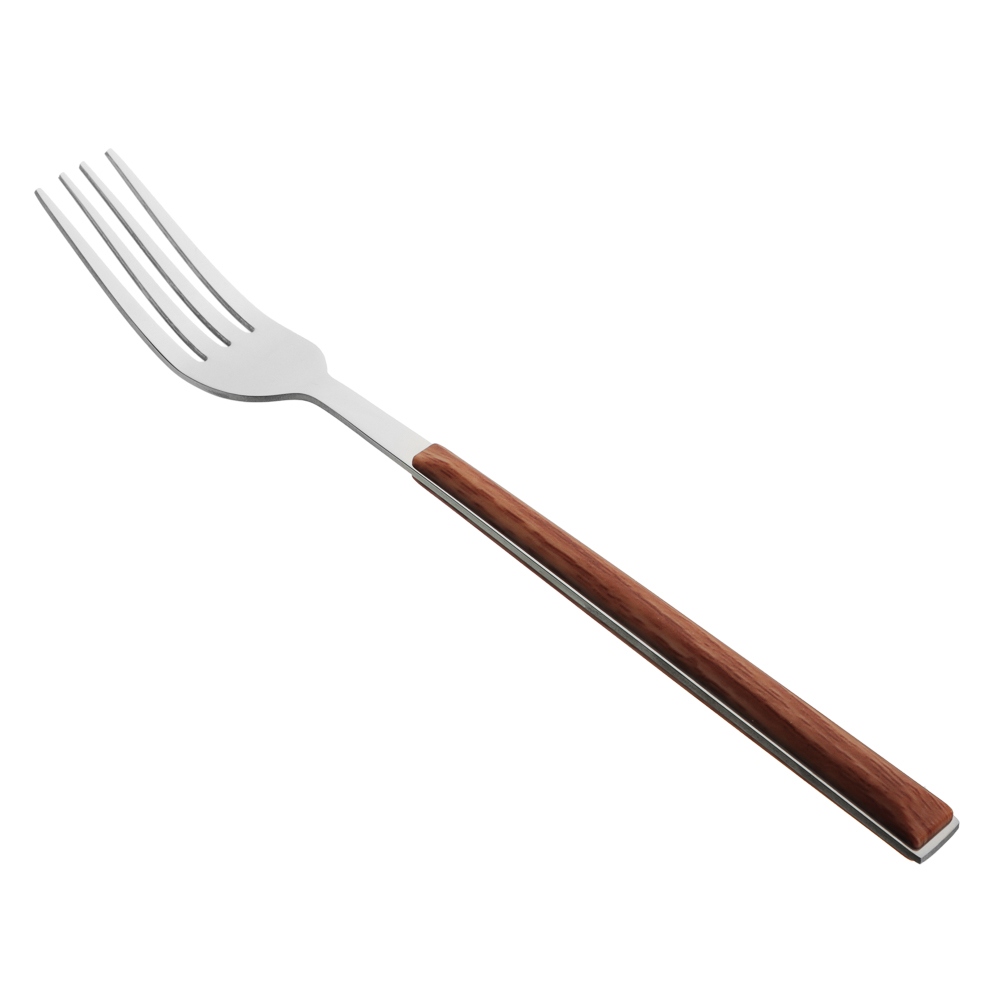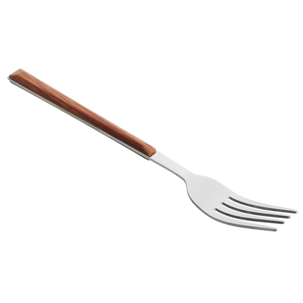 Столовая вилка SATOSHI из коллекции Реймс – качественный столовый прибор из нержавеющей стали, который украсит повседневную и праздничную сервировку. Вилка изготовлена из высококачественной стали AISI 430, устойчивой к коррозии, что обеспечивает её долговечность и сохранение безупречного внешнего вида даже при активном использовании. Ручка выполнена из пластика, стилизованного под дерево, что смотрится эстетично и изящно. Вилка удобно лежит в руке, обладает оптимальным весом и повышенной прочностью, не деформируется и сохраняет свои свойства при контакте с любыми продуктами. Идеально подходит для основных блюд, закусок и салатов.