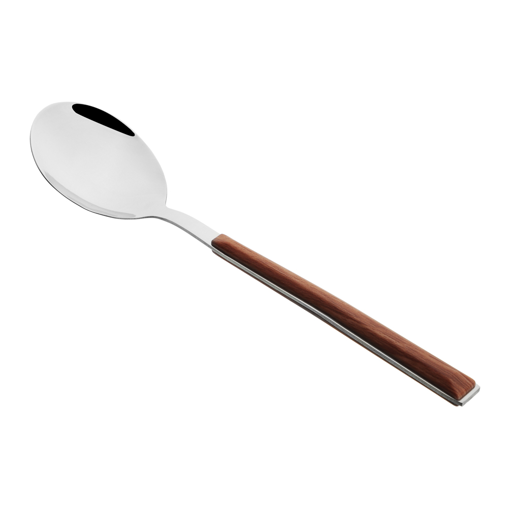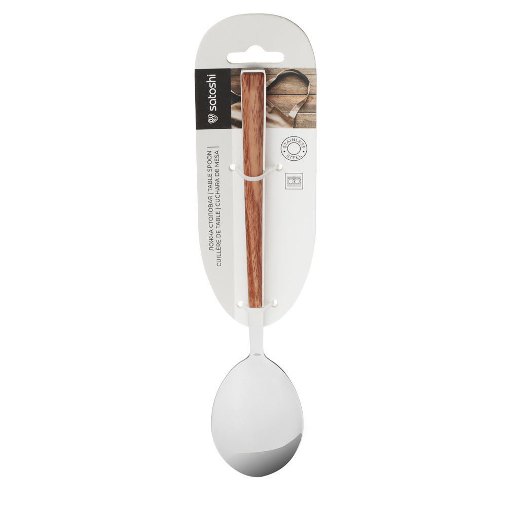 Столовая ложка SATOSHI из коллекции Реймс – стильный и практичный столовый прибор, который станет достойным дополнением как повседневной, так и праздничной сервировки. Изготовлена из высококачественной стали AISI 430, устойчивой к коррозии, что гарантирует долгий срок службы и сохранение безупречного внешнего вида даже при регулярном использовании. Ручка ложки выполнена из пластика, стилизованного под дерево. Изделие удобно лежит в руке, обладает легким весом и повышенной прочностью, не деформируется и сохраняет свои свойства при контакте с любыми продуктами. Столовая ложка SATOSHI Реймс идеально подходит для первых и вторых блюд, а также для сервировки стола.