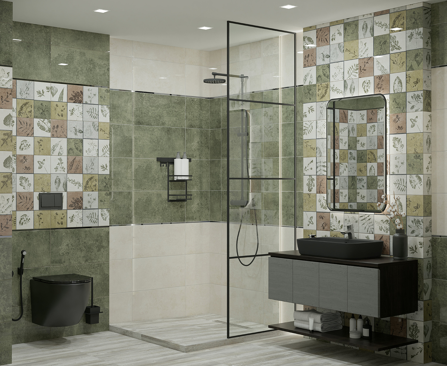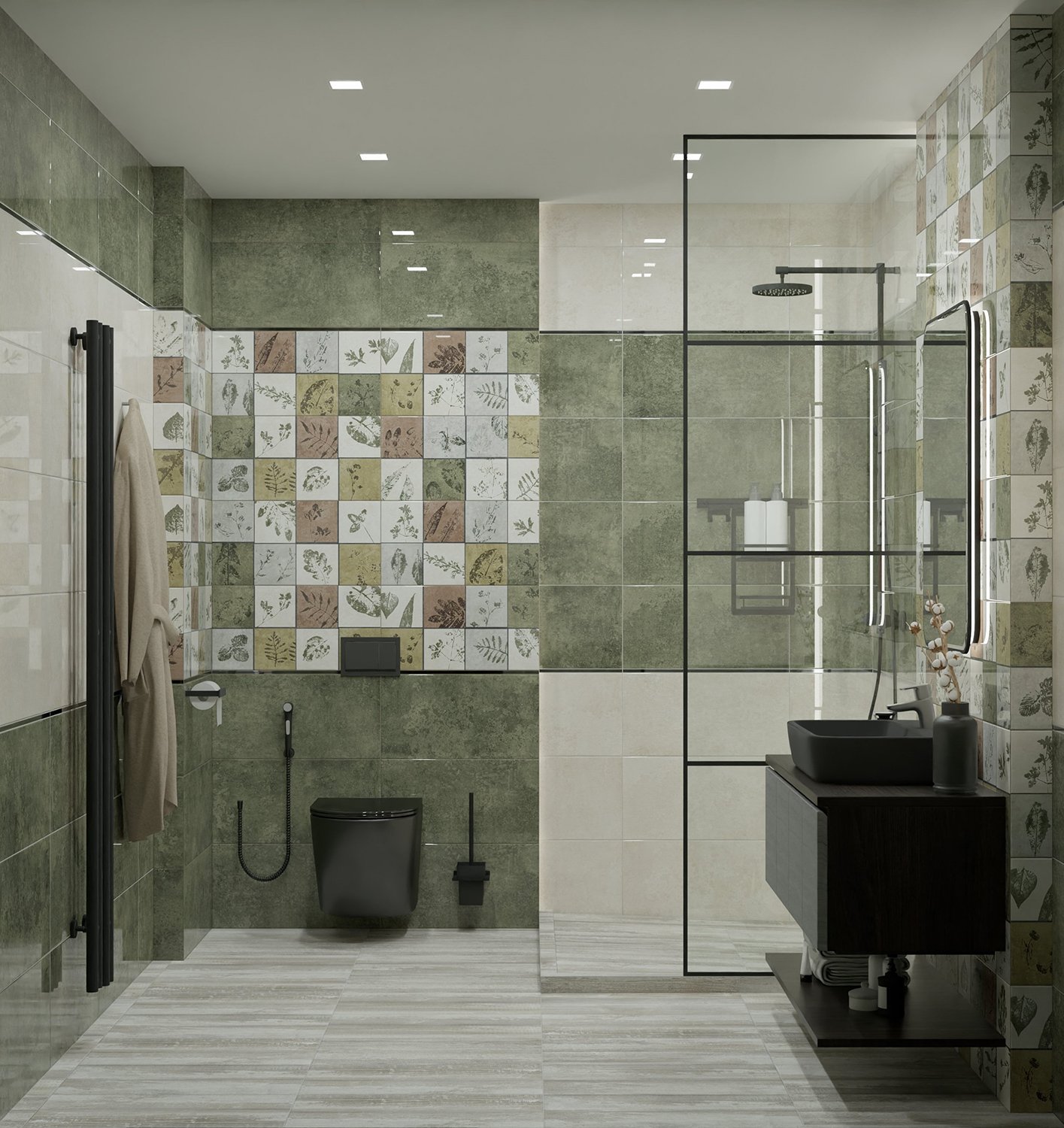 Delia – это воплощение гармонии природной красоты и изысканного дизайна. Вдохновленная великолепием натурального камня, коллекция предлагает два изысканных оттенка - бежевый и зеленый. Плиты формата 30х60 см открывают безграничные возможности для реализации самых смелых дизайнерских идей, начиная от современного минимализма, стремящегося к простоте и элегантности, до экостиля, который подчеркивает единение с природой. Многоцветное панно приносит в пространство динамику и интерес и выступает в роли акцента.