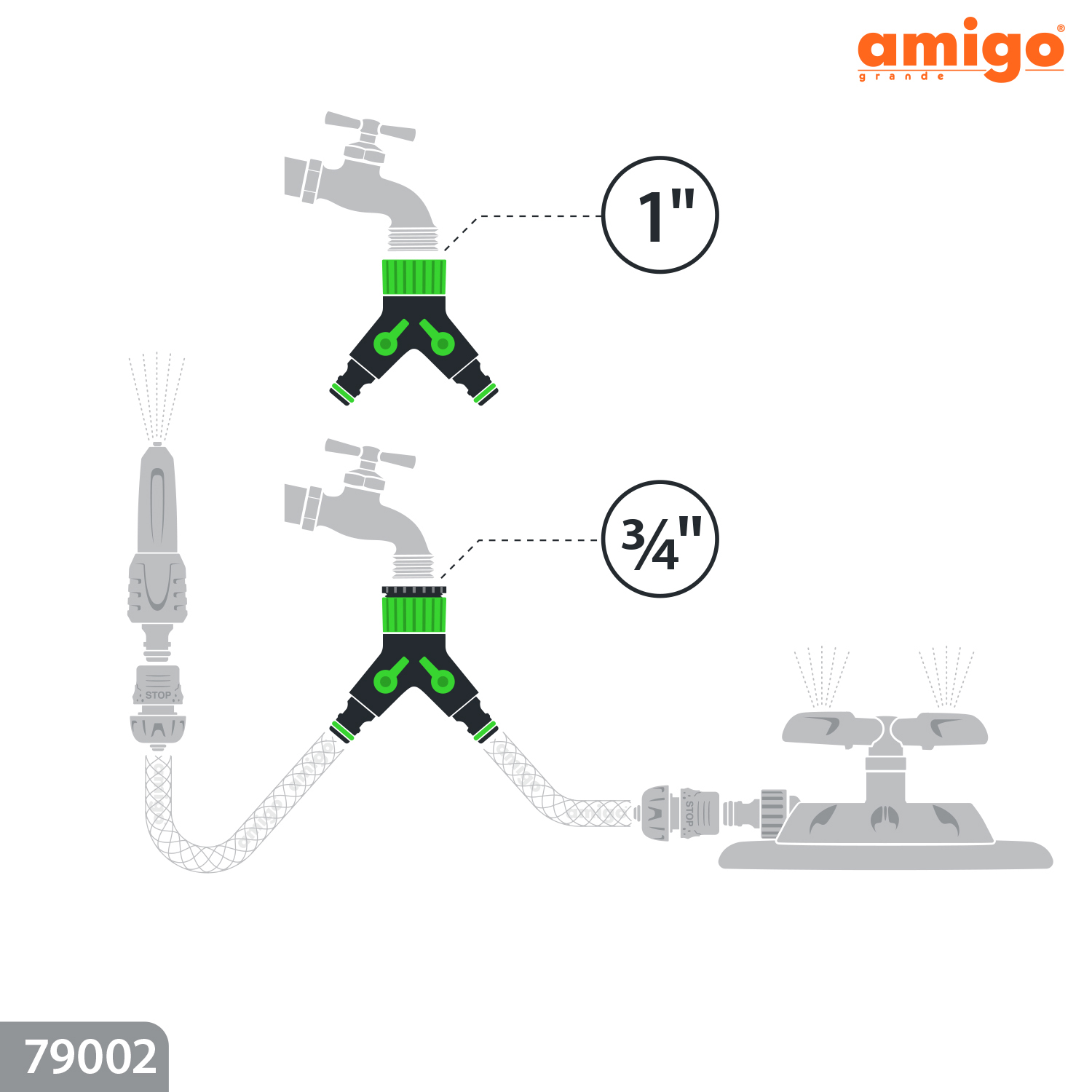 Коннектор разветвитель двухпотоковый AMIGO grande 79002 предназначен для быстрого подключения шланга к источнику воды, переключения каналов подачи воды. Прочный термостойкий ABS-пластик, устойчивый к УФ-излучению, обеспечивает продолжительный ресурс работы в течение нескольких сезонов.