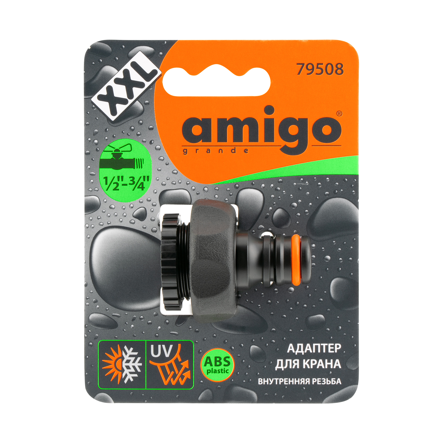 Адаптер для крана с внешней резьбой 1/2"" – 3/4” с soft-покрытием AMIGO grande серия XXL 79508 предназначен для быстрого подключения шланга к источнику воды. Прочный термостойкий ABS-пластик, устойчивый к УФ-излучению, обеспечивает продолжительный ресурс работы в течение нескольких сезонов.