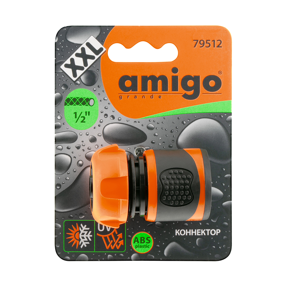 Коннектор 1/2” с soft-покрытием AMIGO grande серия XXL 79512 предназначен для быстрого соединения устройств в системе полива с шлангом 1/2”. Прочный термостойкий ABS-пластик, устойчивый к УФ-излучению, обеспечивает продолжительный ресурс работы в течение нескольких сезонов.