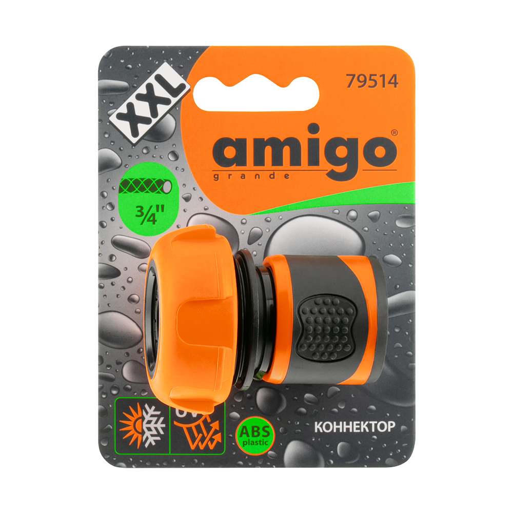 Коннектор 3/4” с soft-покрытием AMIGO grande серия XXL 79514 предназначен для быстрого соединения устройств в системе полива с шлангом 3/4”. Прочный термостойкий ABS-пластик, устойчивый к УФ-излучению, обеспечивает продолжительный ресурс работы в течение нескольких сезонов.