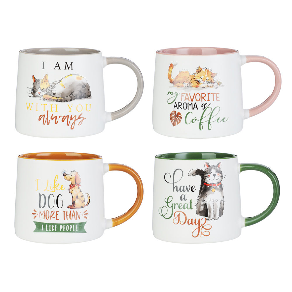 Кружка Millimi «Наши питомцы», объем 370 мл украсит каждое чаепитие и завтрак за чашечкой кофе. Имеет оригинальный дизайн с цветной внутренней поверхностью и стильным принтом с надписью и изображением питомца. Спокойная цветовая гамма гармонично вписывается в интерьер кухни, приятна глазу и создает атмосферу уюта. Посуда выполнена из высококачественного фарфора. Толстые стенки долго сохраняют тепло напитка и устойчивы к образованию сколов и трещин. 4 дизайна в ассортименте.