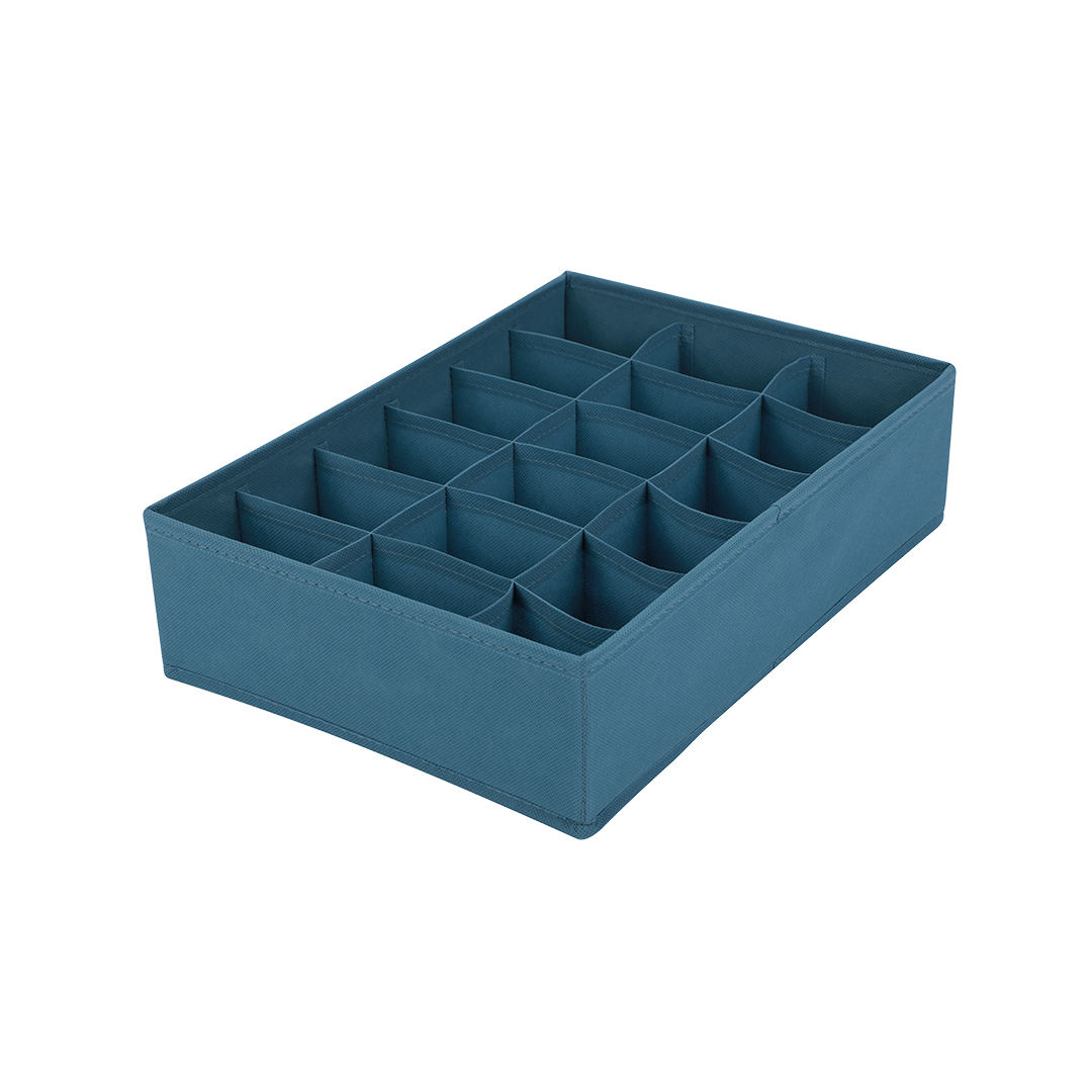 Короб-органайзер из коллекции "Аквамарин" от Handy Home изготовлен из нетканого материала синего цвета и идеально подойдет для бережного хранения вещей на полках шкафов и стеллажей. Органайзер имеет эргономичные внутренние перегородки, которые делят площадь на 18 секций. Складная конструкция короба-органайзера позволяет компактно хранить его в сложенном виде и легко собрать для дальнейшего использования. Практичный спанбонд обладает высокой воздухопроницаемостью для вентиляции и свободной циркуляции воздуха, но при этом прочен и устойчив к истиранию и сминанию. Широкий ассортимент аксессуаров для хранения из коллекции "Аквамарин" позволит создать порядок и гармонию в вашем гардеробе.