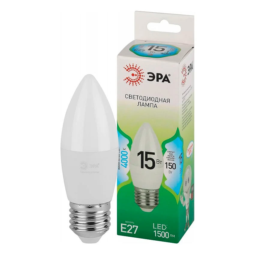 Лампа светодиодная ЭРА Green Line B35-15W-840-E27