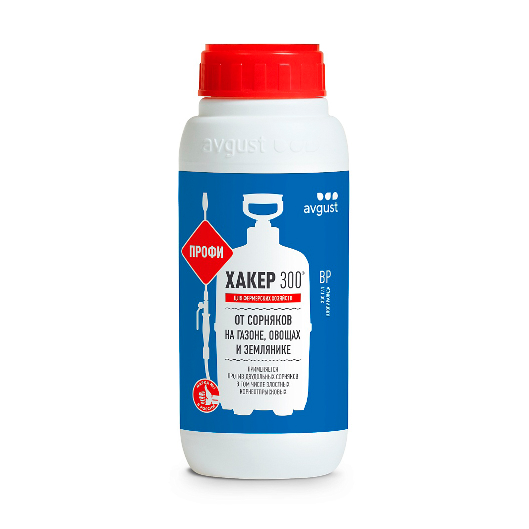 Хакер 300 — профессиональный избирательный гербицид для обработки газонов, посадок земляники и капусты. Оптимальный объем фасовки для фермеров, владельцев больших участков, ландшафтных работ. Защищает от одуванчика, осотов, подорожника и других широколистных растений.