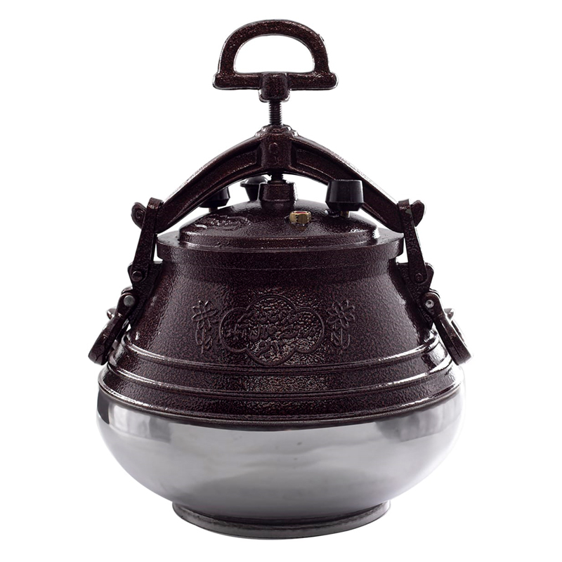 Толстостенная посуда для приготовления пищи под высоким давлением. Высокое давление ограничивает кипение и создает более высокие температуры, невозможные при более низком давлении, что позволяет готовить пищу быстрее, чем при нормальном давлении. Толщина стенки казана составляет от 6 до 10 мм, что создает эффект антипригарной посуды.