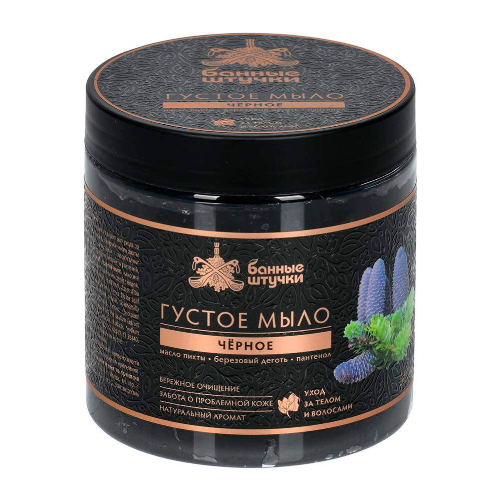 Это густое мыло прекрасно сочетает свойства шампуня и геля для душа — оно подходит и для ухода за телом, и для ухода за волосами. Входящие в состав эфирное масло пихты и березовый деготь обладают противовоспалительными и восстанавливающими свойствами, способствуют нормализации работы сальных желез, а пантенол помогает увлажнить и смягчить кожу. Черное мыло также содержит экстракты растений, благоприятно воздействующие на кожу и волосы.