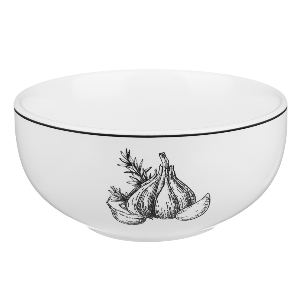 Салатник MILLIMI «Китчен», 14х6,5 см из керамики, объем 550 мл – это качественная эстетичная посуда для повседневного использования и сервировки праздничного стола. Глубокий салатник подходит для подачи салатов, солений и закусок на общий стол. Белоснежная посуда с ненавязчивым контрастным принтом в черном цвете прекрасно сочетается с белой и цветной посудой, любыми столовыми приборами и текстильными элементами сервировки. Обладает повышенной прочностью и устойчивостью к образованию царапин и сколов. Не впитывает запахи и не окрашивается от продуктов, сохраняя белоснежный цвет на протяжении всего срока эксплуатации.
