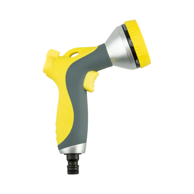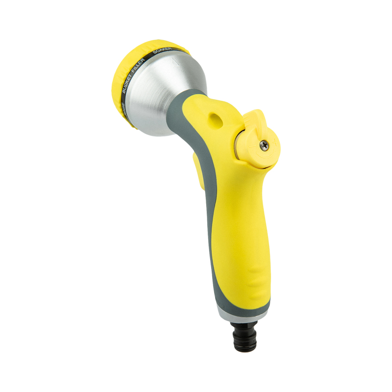 Пистолет-распылитель представляет собой садовый аксессуар, предназначенный для полива растений и почвы. Пистолет оснащен эргономичной прорезиненной ручкой, благодаря которой его удобно и комфортно держать в руке даже на протяжении длительного времени. Имеет 7 режимов подачи воды, регулируемых поворотной головкой. Легко нажимаемый курок делает процесс полива удобным и простым. Изделие надежно и герметично крепится к шлангу при помощи универсального соединителя, расположенного на конце пистолета.