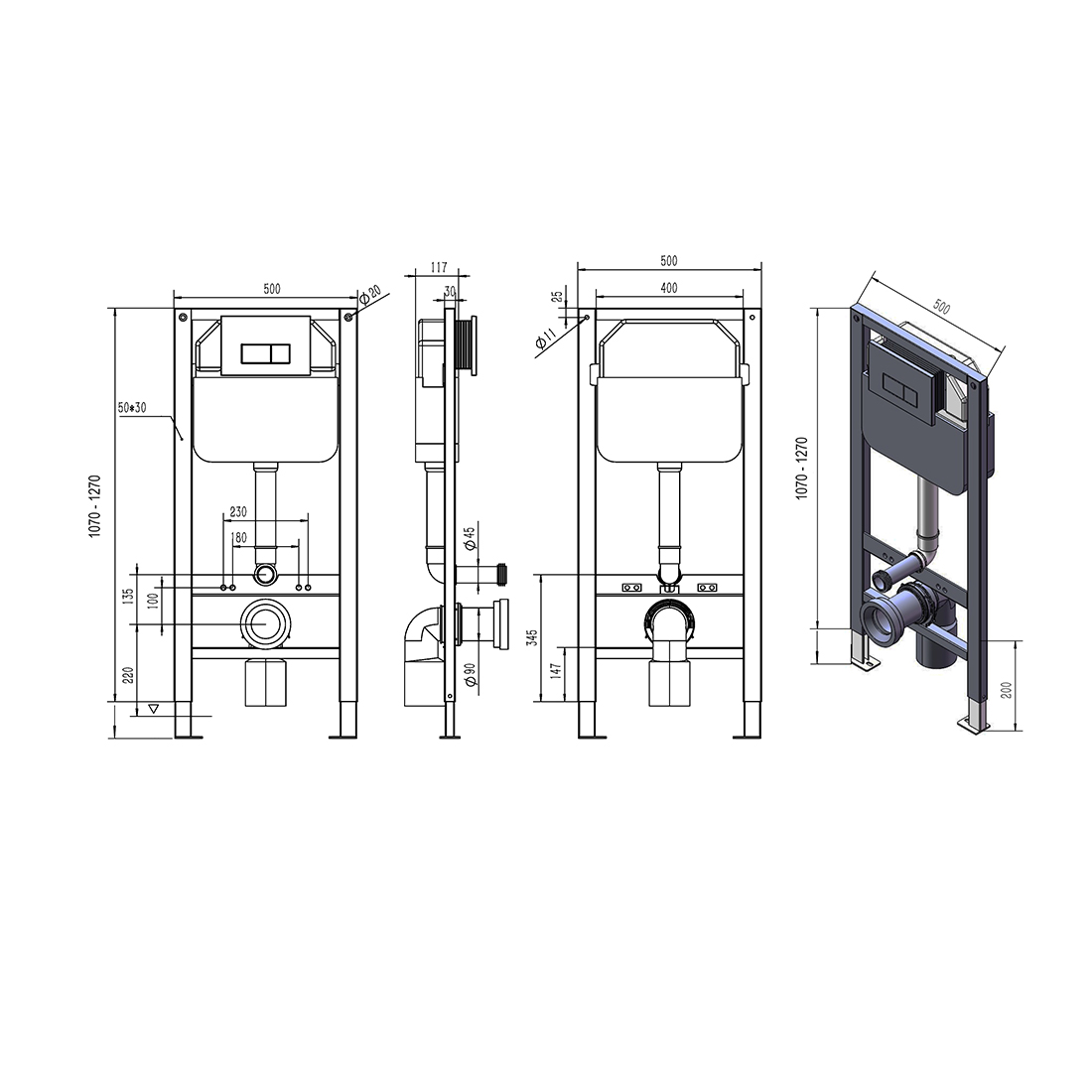 - независимо от способа крепления, инсталляция надежна и способна выдерживать нагрузку до 400 килограмм
