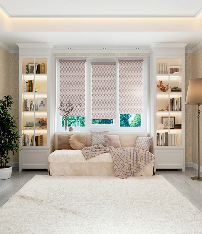 Жизель – это плотные рулонные шторы с классической вензельной розеткой на ткани. Оригинальное решение для помещений в классическом стиле. Вешать рулонные шторы можно с плотными портьерами, с тюлем или как самостоятельный элемент. Устойчива к выцветанию, пыле-влаго стойкая. Светопроницаемость — 30%.