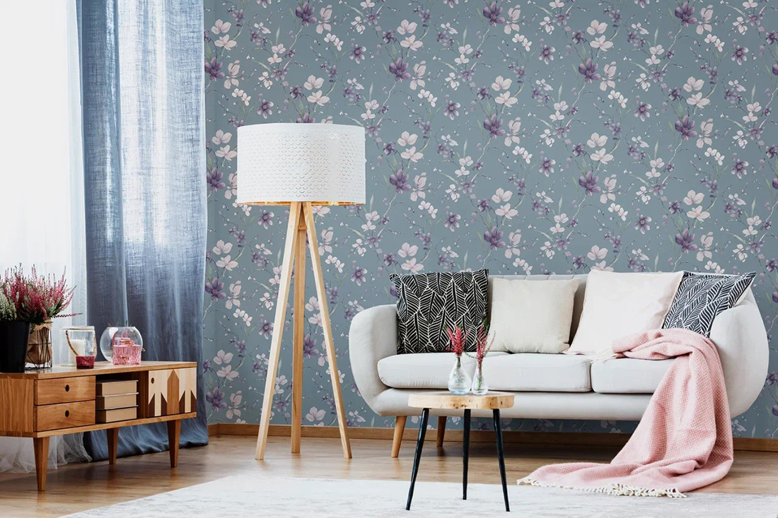 Виниловые обои горячего тиснения на флизелиновой основе 1,06 х10 м. Коллекция «Виола» – утонченный природный мотив, нежная грация природы в реалистичном легком рисунке полевых цветов. Утонченные лепестки и веточки подчеркнуты серебристым блеском, словно утренней росой, мерцающей на солнце. Однотонный фон создает впечатление воздушности. Фоновый компаньон выделит акценты в интерьере.