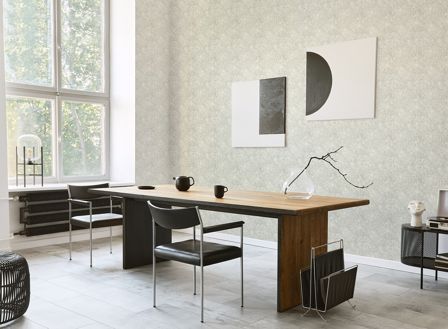 Коллекция «Орион» кухонный винил 0,53*10 м – естественность и природный характер рисунка, мягкость и лаконичность. Игра света и тени, сложная текстура с эффектом необработанной поверхности и тонкие цветовые вариации создают интересную и притягательную композицию. Поверхность обоев имеет шероховатую, и неровную текстуру. Сочетание визуально рельефных участков и впадин создает ощущение глубины и возраста. Крупные каменные прожилки подчеркнуты металлическим блеском, дающим блики при освещении.