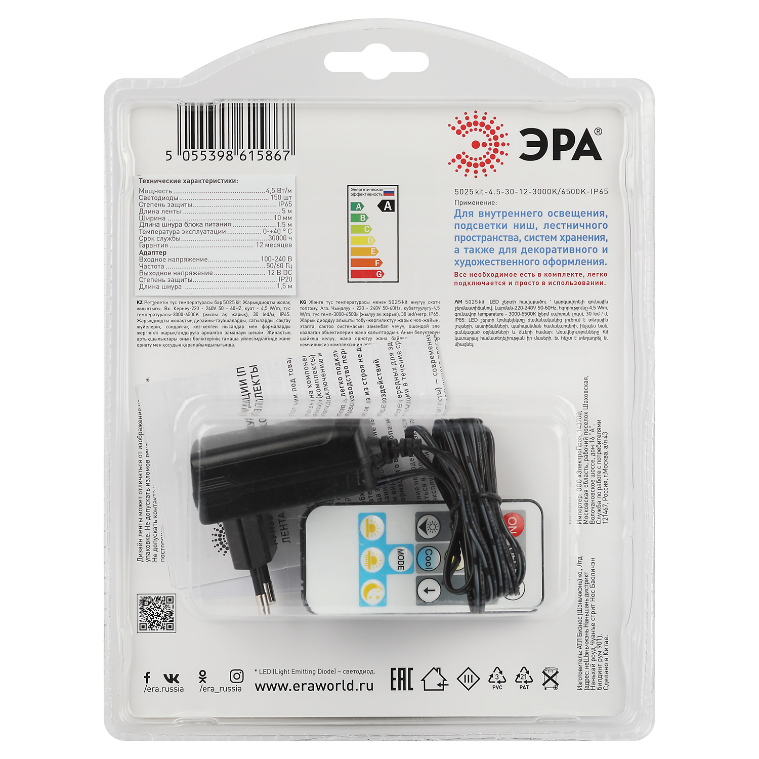 Лента светодиодная ЭРА 5025kit-4.5-30-12-3000K/6500K-IP65