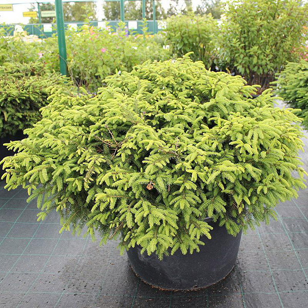 Перейти в каталогЕль обыкновенная Нидиформис — карликовый густой гнездо-видный кустарник, который ценится за свою необычную подушковидную форму и неприхотливость. У молодых растений характерное углубление посередине. В возрасте 10 лет достигает 0,4 м высотой при диаметре 1 м. Побеги тонкие и гибкие, хвоя короткая, светло-зеленого цвета. Это растение идеально подходит для небольших садов, альпинариев, рокариев и контейнерного озеленения.
