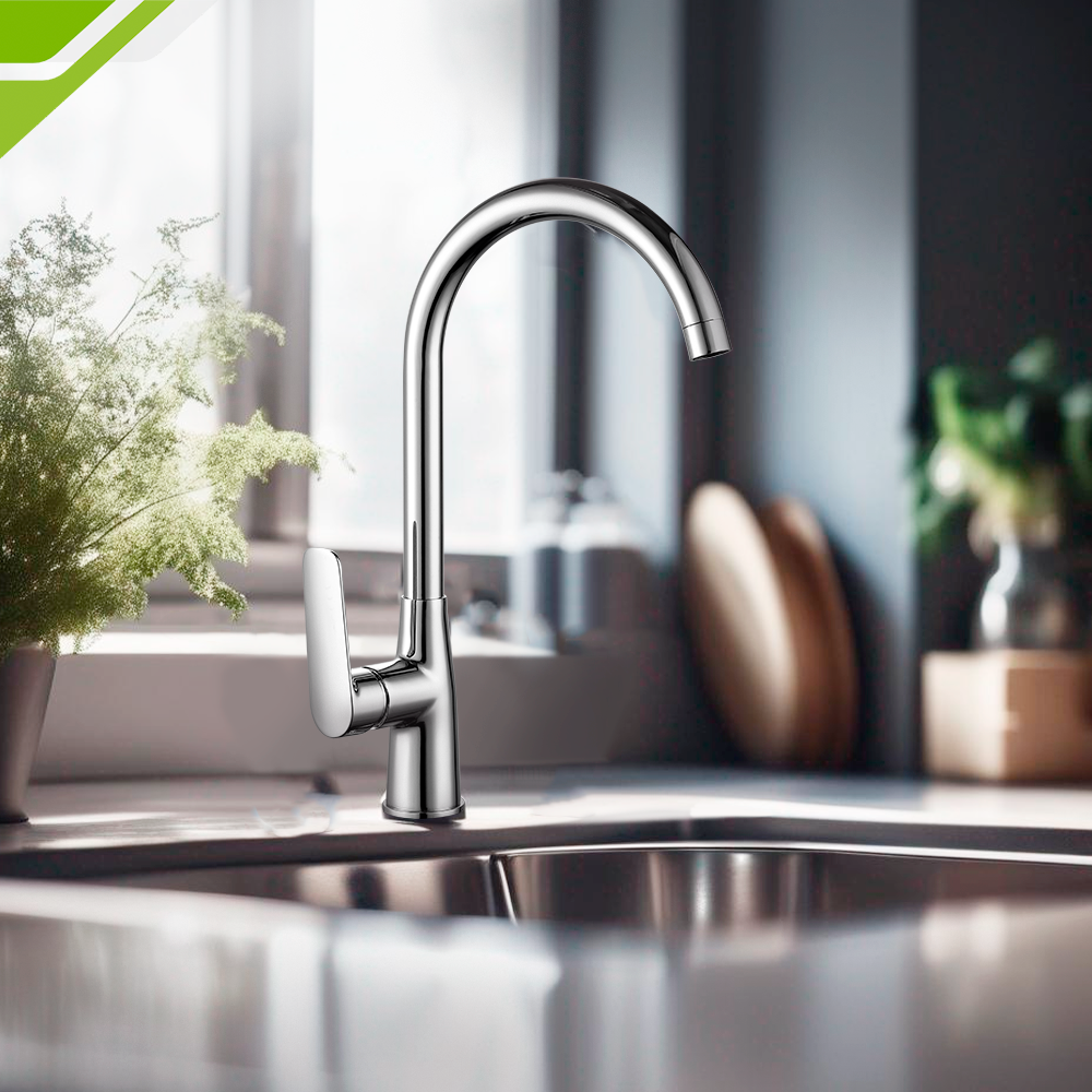 В смесителе используется Картридж с функцией холодного запуска Cold Start - вне зависимости от положения ручки, при открытии поступает холодный поток воды. Картридж автоматически регулирует подачу горячей воды, плавно, но быстро нагревая поток до нужной температуры. Ход ручки при регулировке температуры воды охватывает угол 90° и осуществляется из вертикального положения в направлении на себя - такое устройство позволяет разместить смеситель максимально близко к стене и оставить больше рабочего пространства на кухне. Высота излива 260 мм позволяет набрать воду в высокую емкость или помыть овощи без разбрызгивания воды.