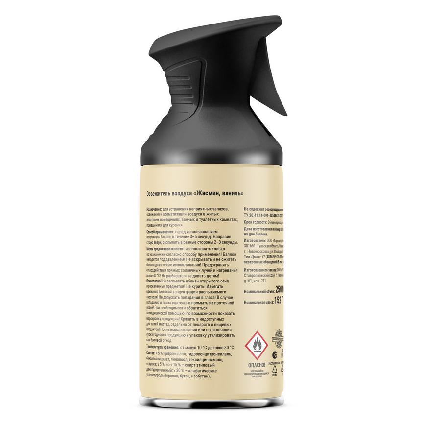 Освежитель воздуха Arluni с ароматом жасмина и ванили - это отличное решение для создания приятной атмосферы в вашем доме или офисе. Аэрозольный баллон с триггером очень удобен в использовании - достаточно нажать на специальный головной механизм, чтобы создать приятный аромат и эффективно избавиться от неприятных запахов. Кроме функциональности, освежитель воздуха Arluni также отличается стильным дизайном, который станет элегантным дополнением к вашему интерьеру.