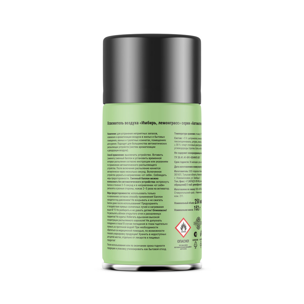 Освежитель воздуха Arluni с ароматом имбиря и лемонграсса - это отличное решение для создания приятной атмосферы в вашем доме или офисе. Благодаря сменному аэрозольному баллону он легко устанавливается в большинство автоматических устройств, обеспечивая мгновенное действие и эффективно устраняя неприятные запахи. Кроме функциональности, освежитель воздуха Arluni также отличается стильным дизайном, который станет элегантным дополнением к вашему интерьеру.