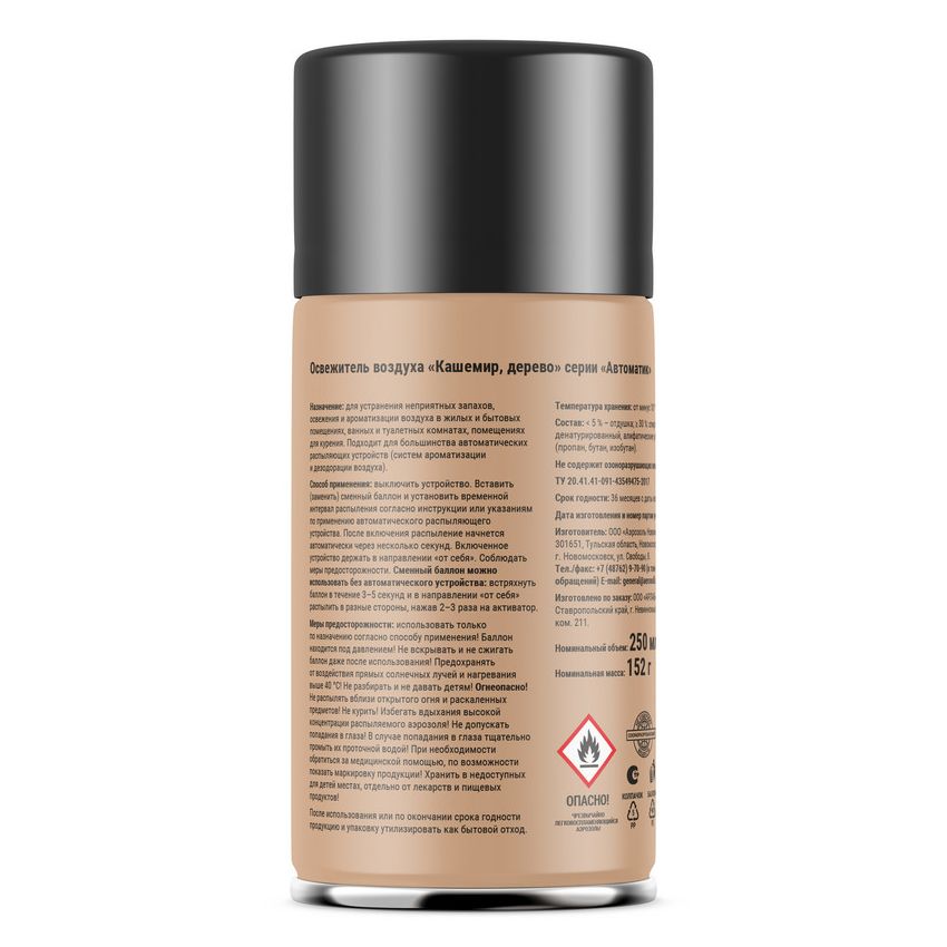 Освежитель воздуха Arluni с ароматом кашемира и дерева — это отличное решение для создания приятной атмосферы в вашем доме или офисе. Благодаря сменному аэрозольному баллону он легко устанавливается в большинство автоматических устройств, обеспечивая мгновенное действие и эффективно устраняя неприятные запахи.