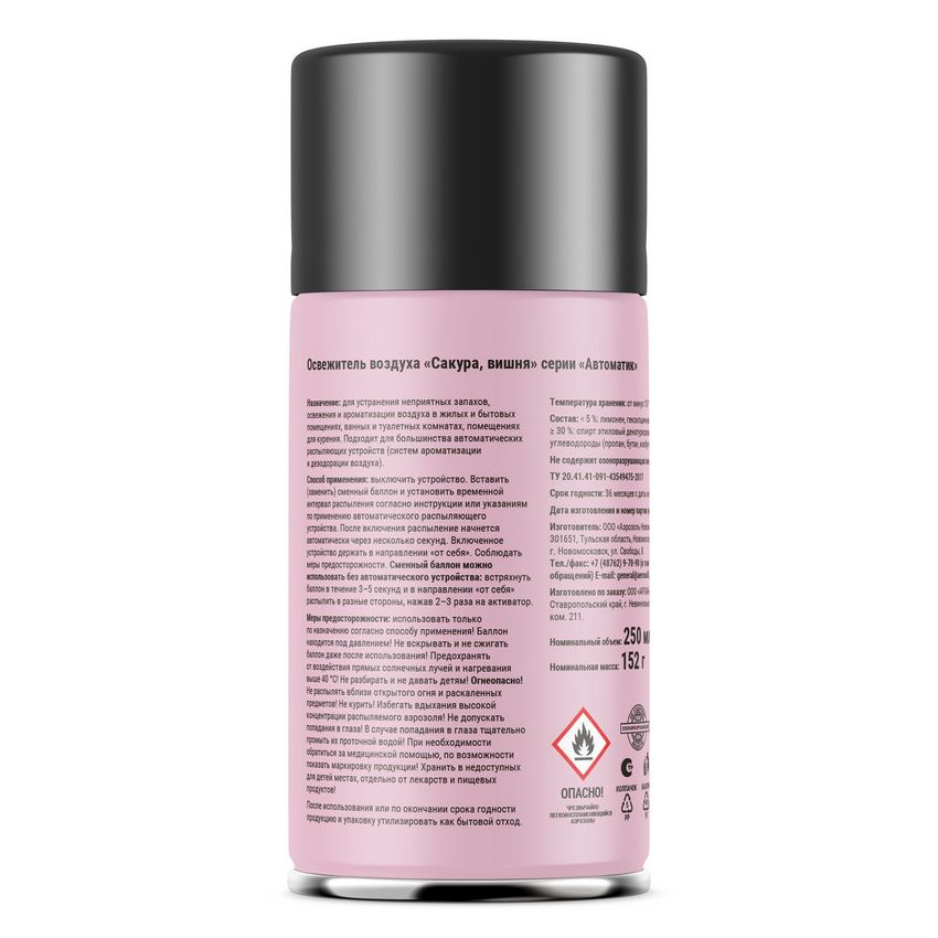 Освежитель воздуха Arluni с ароматом сакуры и вишни — это отличное решение для создания приятной атмосферы в вашем доме или офисе. Благодаря сменному аэрозольному баллону он легко устанавливается в большинство автоматических устройств, обеспечивая мгновенное действие и эффективно устраняя неприятные запахи.