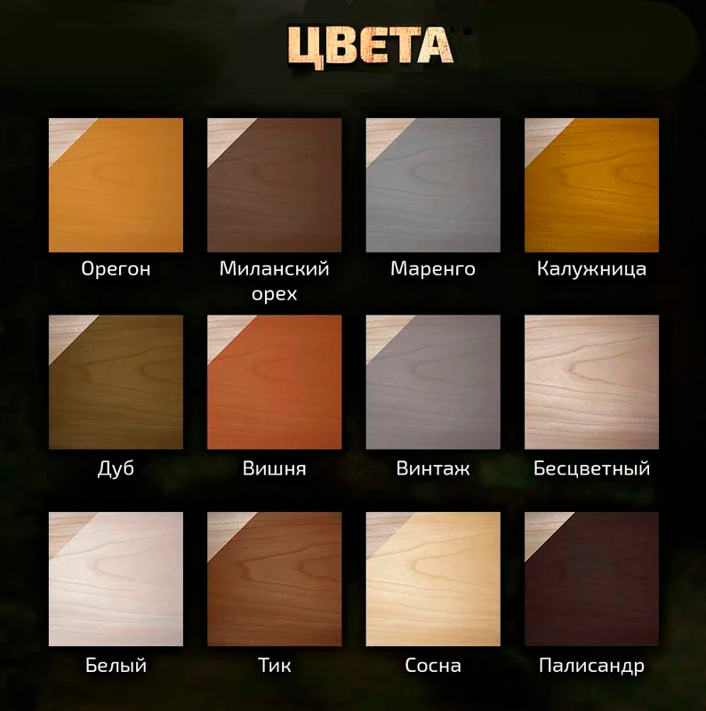 Эмульсия льняного масла, входящая в состав, придает древесине естественный блеск и подчеркивает её структуру. Вода — экологичный растворитель, безопасный для здоровья человека и окружающей среды. Целевые добавки — специальные вещества, усиливающие защитные свойства покрытия, такие как устойчивость к влаге, ультрафиолетовому излучению и биологическим повреждениям.
