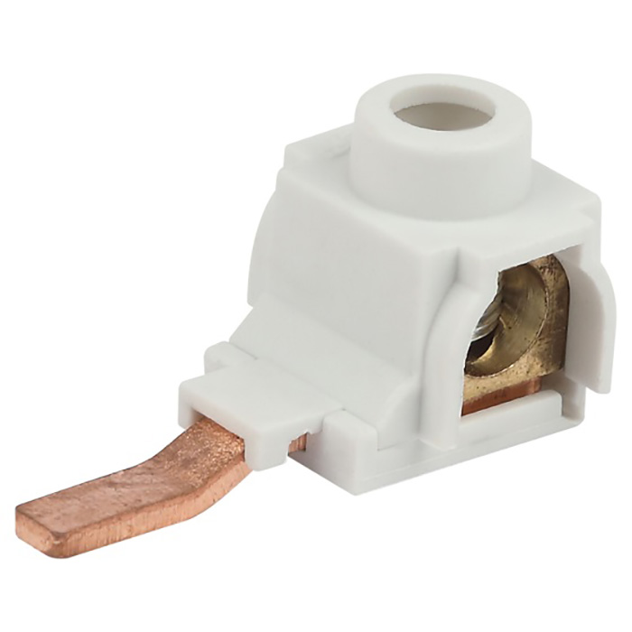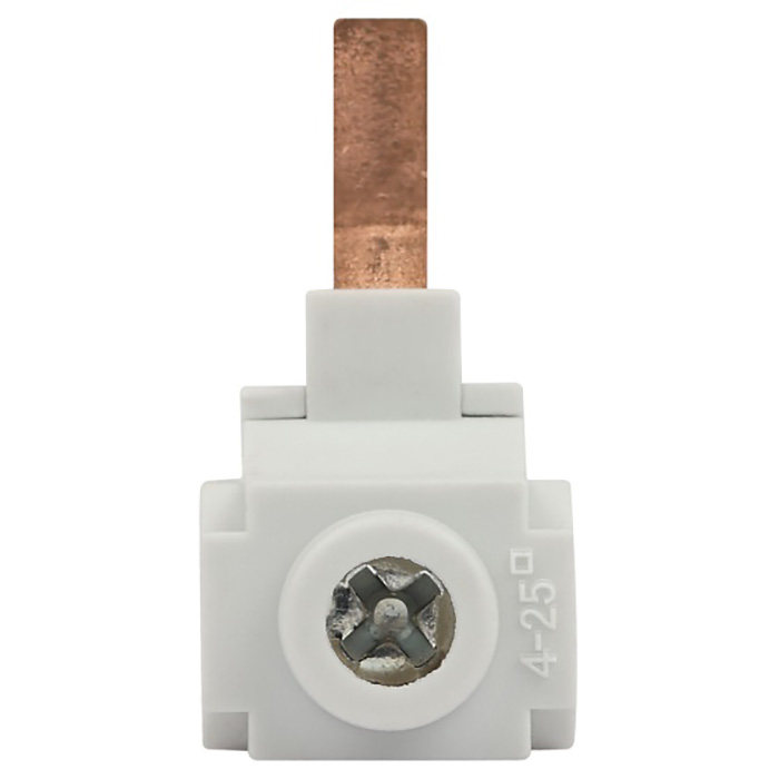Клеммы вводные для модульного оборудования КВМ представляют собой клеммный винтовой зажим с плоским выводом клеммы в компактном корпусе и предназначены для подведения питания к соединительным шинам и клеммным зажимам модульных аппаратов в электрощитовом оборудовании и электроустановках напряжением до 400 В. Применяются совместно с шинами соединительными «Гребёнками» для фазных, нулевых и защитных проводников. Изделие имеет удобную компактную конструкцию, которая в значительной степени облегчает процесс монтажа и подключения и не требует предварительной подготовки. Применение клемм КВМ для подключения провода СИП к модульному оборудованию позволяет создавать долговременное и стабильное электрическое соединение.