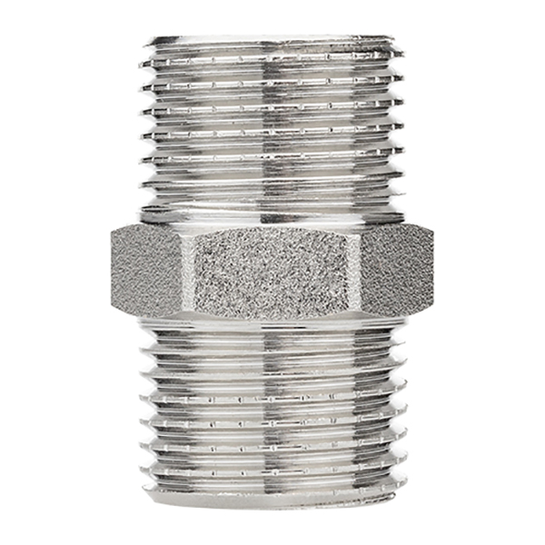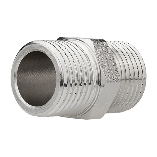 Ниппель (бочонок) предназначен для соединения элементов трубопровода в системах хол/гор водоснабжения и отопления. Ниппель имеет форму цилиндра с внешней резьбой. Для облегчения процесса монтажа каждое изделие снабжено участком шестигранной формы под гаечный и/или разводной ключ. Для получения герметичного соединения со стороны резьбового элемента при установке соединителя необходимо использование таких уплотнительных материалов как сантехнический лен и паста и/или тефлоновая лента (лента ФУМ) и/или ананаэробный герметик. Соединение получается разъемным, что позволяет при необходимости произвести обслуживание участка трубопровода, кроме того, возможно повторное использование фитинга. Замоноличивание разъемных соединений в строительные конструкции - недопустимо. Фитинг сделан из латунного сплава, благодаря чему подходит для использования в системах питьевого водоснабжения из-за минимального содержания свинца в сплаве. Для защиты от коррозии и придания изделию эстетичного вида как на наружную, так и на внутреннюю поверхности фитинга нанесено гальваническое никелевое покрытие.