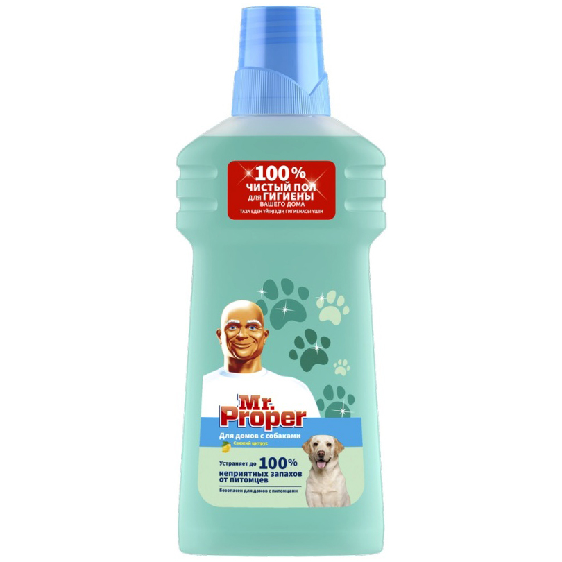 Уникальный состав Mr. Proper для домов с питомцами создан специально для уборки помещений, в которых живут собаки. Жидкость подходит для мытья стен, полов, корпусной мебели, а также любимых мест обитания питомца. Отмывает шерсть, следы лап, засохшие остатки корма с ламината или линолеума, удаляет брызги с керамической плитки. Придает поверхностям блеск, устраняет неприятные запахи.