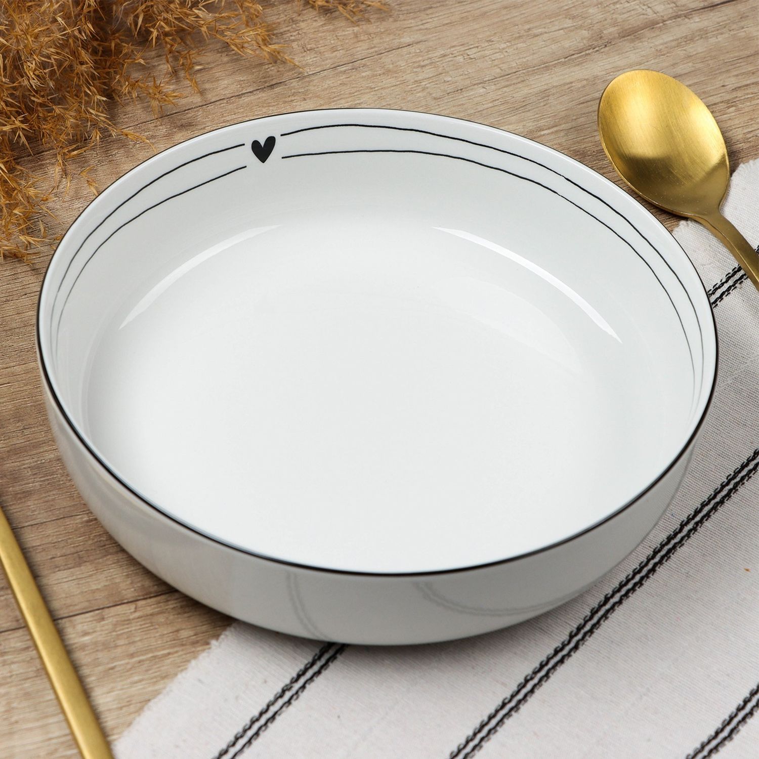 Тарелка коллекции «С любовью» порадует глаз своим элегантным дизайном и особой атмосферой тепла и заботы. Выбирая эту тарелку, вы получаете надежное изделие, изготовленное из высококачественной керамики. Оно прослужит долго и выдержит интенсивное использование, поскольку способно переносить высокие температуры в микроволновой печи и бережно очищаться в посудомоечной машине.