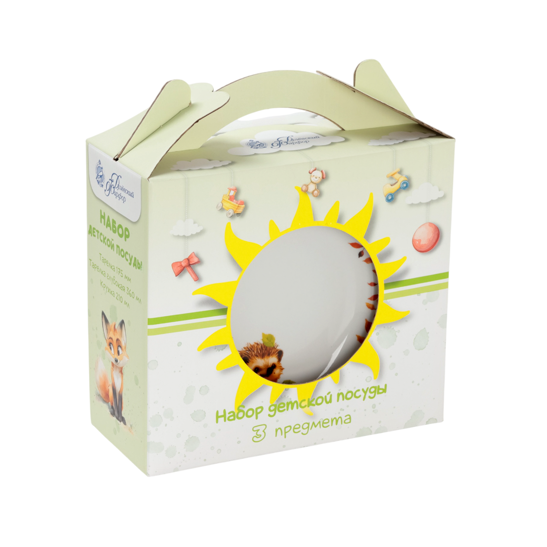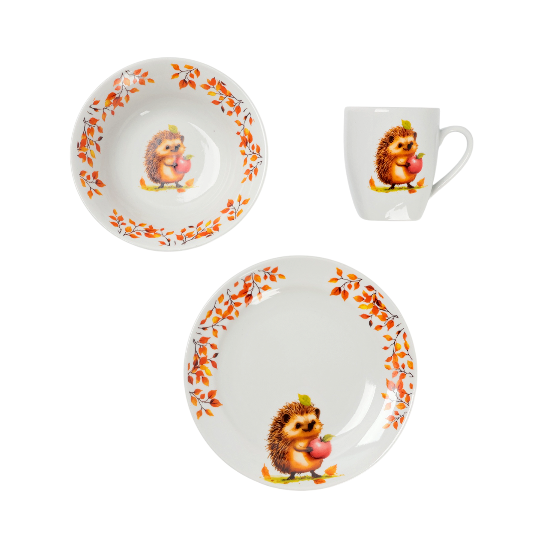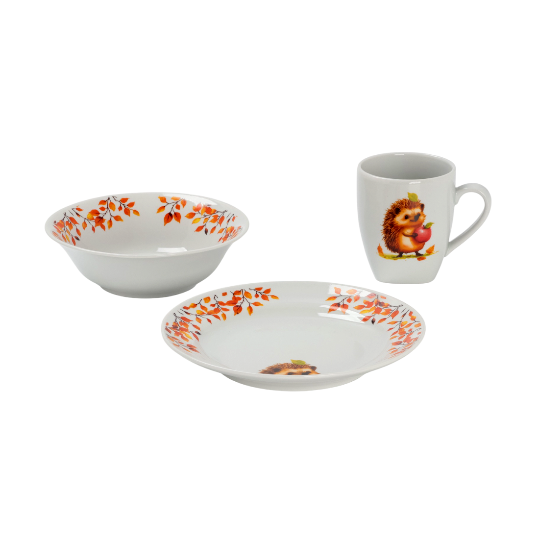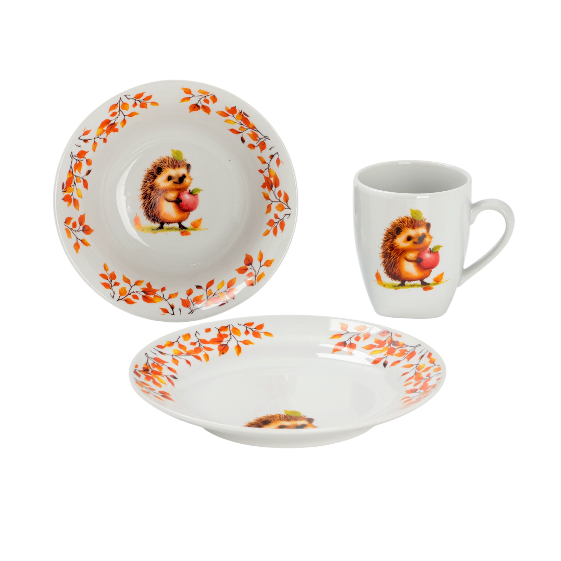 Набор посуды 3 предмета  "Ежик" из дулевского фарфора станет надёжным и стильным выбором для семейных обедов. Подходит для детей старше трёх лет, он включает тарелку (175 мл), миску (360 мл) и кружку (210 мл). Белый цвет и очаровательный рисунок делают этот комплект универсальным и привлекательным для повседневного использования.