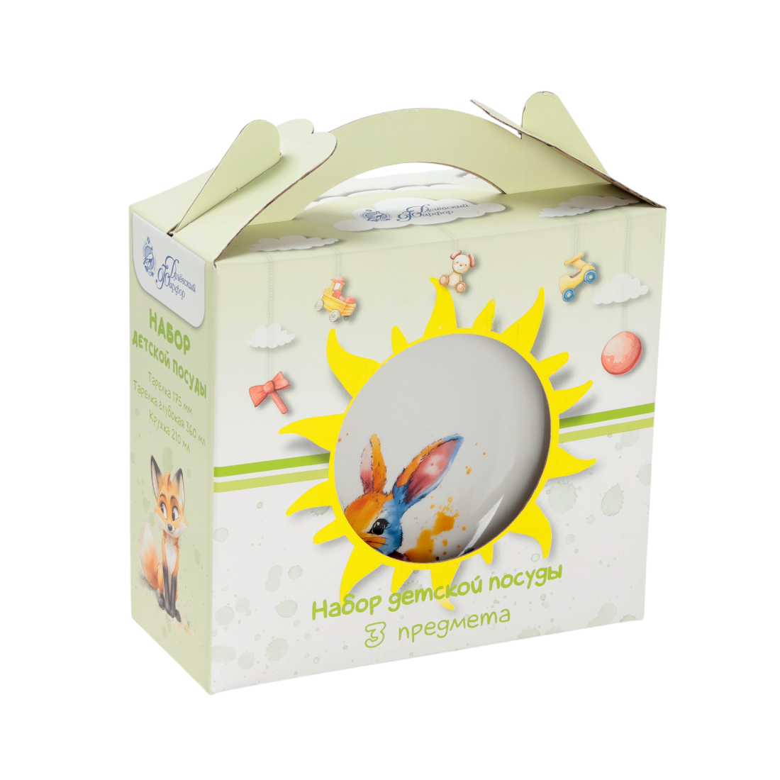Набор посуды 3 предмета Зайка. Набор детской посуды с зайчиком из дулевского фарфора — это практичный и стильный выбор для повседневных трапез. Подходит для детей старше трёх лет, он включает тарелку (175 мл), миску (360 мл) и кружку (210 мл). Белый цвет и очаровательный рисунок делают этот комплект универсальным и привлекательным для ежедневного использования.