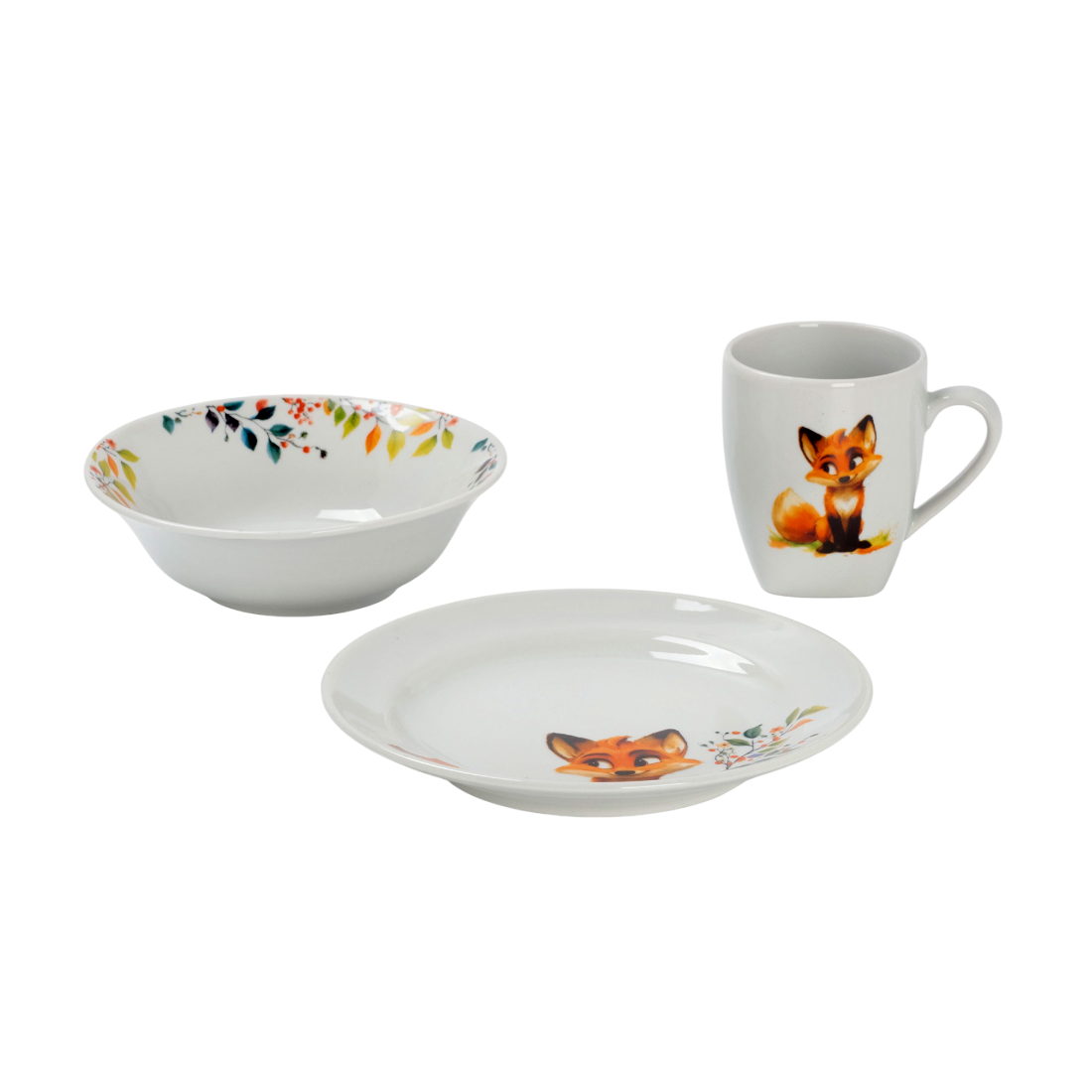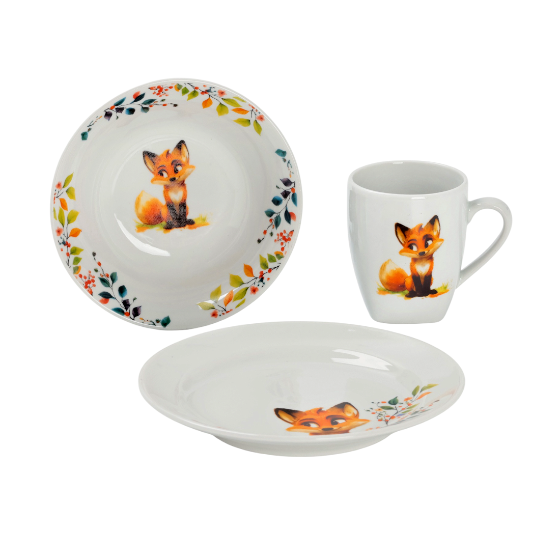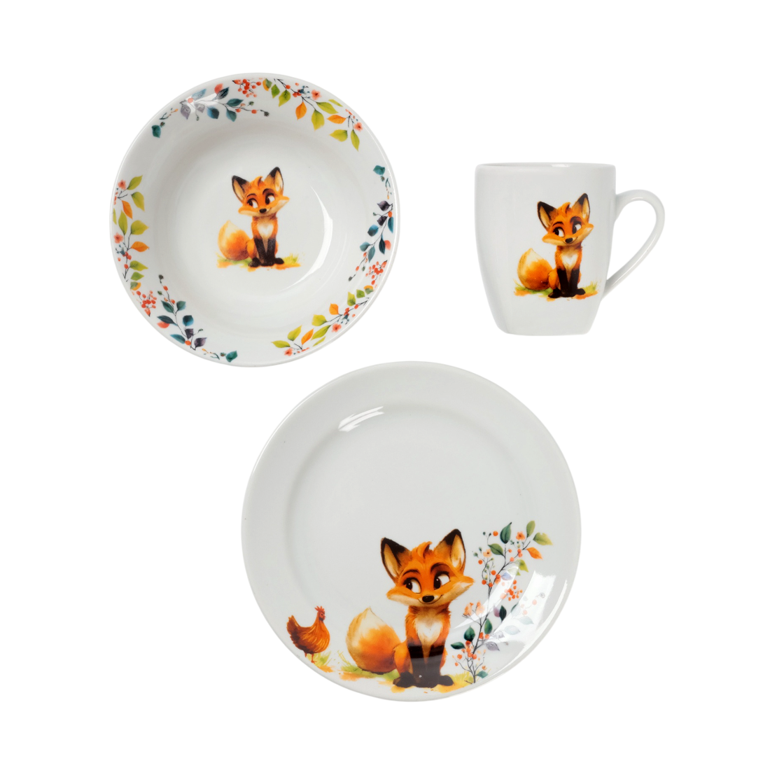 Набор посуды 3 предмета "Лисичка" - очаровательный набор детской посуды с изображением лисы станет идеальным спутником для вашего малыша во время еды. В комплект входят тарелка, миска и кружка, выполненные из качественного фарфора. Белый цвет и милый рисунок создают уютную атмосферу, а удобные размеры подходят для детских порций.