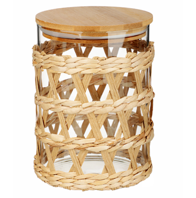 Банка для хранения VETTA ЭКО Жгут объёмом 1100 мл и размером 16х11 см с соломенным плетением сочетает натуральные материалы и современную функциональность. Стеклянный корпус с декоративным плетением из соломы – экологичный акцент в интерьере Бамбуковая крышка обеспечивает герметичное хранение круп, чая, кофе, орехов. Создаёт атмосферу эко-стиля на кухне, сохраняя продукты свежими.