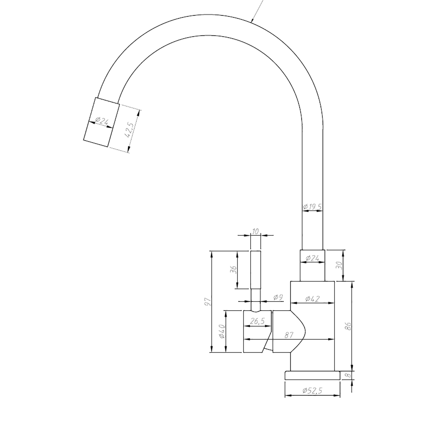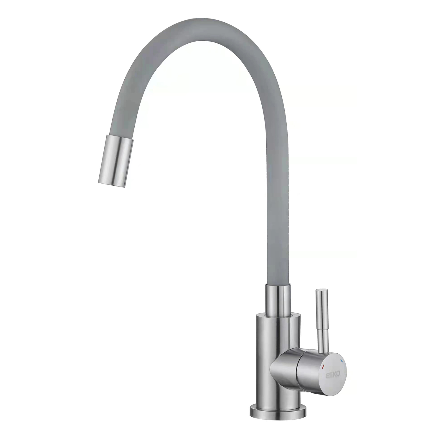 Смеситель Snake K44 G: Смеситель "Snake" с гибким серым изливом 48 см из нержавеющей стали. Сочетание серого цвета и стали создает современный индустриальный вид. Удобный гибкий излив облегчает мытье посуды. Прочная конструкция гарантирует долгий срок службы. Комплектация: пьедестал (металл), ребро жесткости, крепление "FastFix", гибкая подводка 35см.