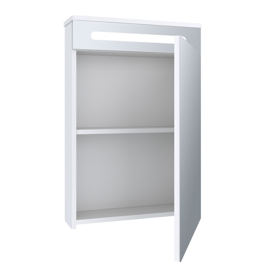 Зеркальный шкаф для ванной ПАРМА - сочетание безупречного стиля и современных тенденций в дизайнерском оформлении ванной комнаты. Шкаф зеркало для ванной ПАРМА выполнено в традиционном и всегда модном белом цвете и гармонично впишется в любой интерьер ванной комнаты. Шкафчик в ванную имеет одну распашную дверцу с зеркальным фасадом. Шкаф оборудован петлями со встроенным доводчиком, встроенной сверху люминесцентной подсветкой и розеткой с выключателем. Внутри шкафа - две внутренние полки. Выпускается только в правом исполнении.