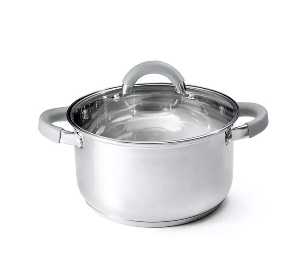Кастрюля изготовлена из высококачественной нержавеющей стали марки AISI 201, имеет крышку из термостойкого стекла и нержавеющей стали с пароотводом. Тройное капсулированное дно с алюминиевым и стальным дисками равномерно распределяет тепло, экономит энергию и время приготовления, а также сохраняет тепло при выключении источника нагрева. Внутри кастрюли есть мерная шкала для удобства приготовления. Подходит под любые типы плит, в том числе индукционные.