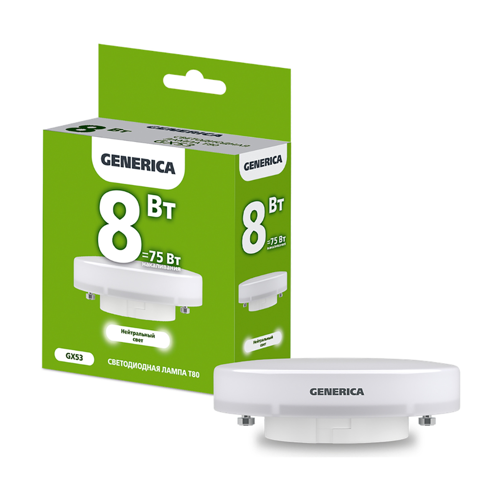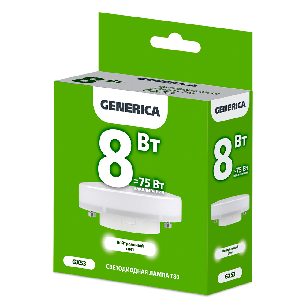 Лампа светодиодная GENERICA LL-T80-08-230-40-GX53-G