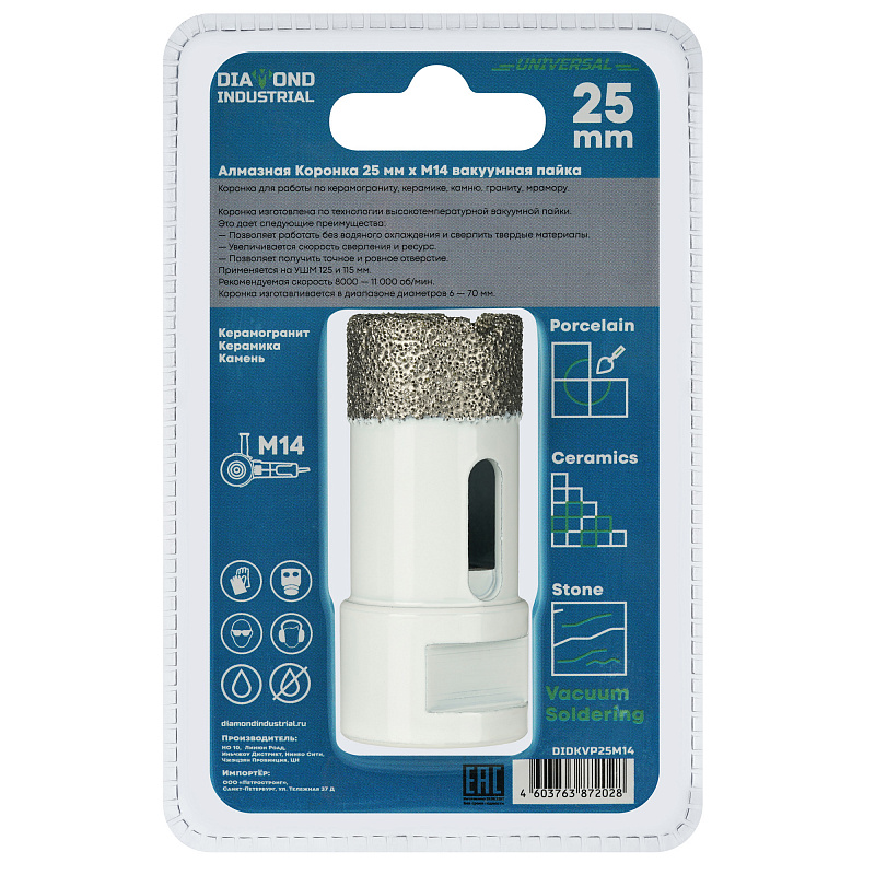 Алмазная коронка вакуумная пайка 25 мм Universal Diamond Industrial