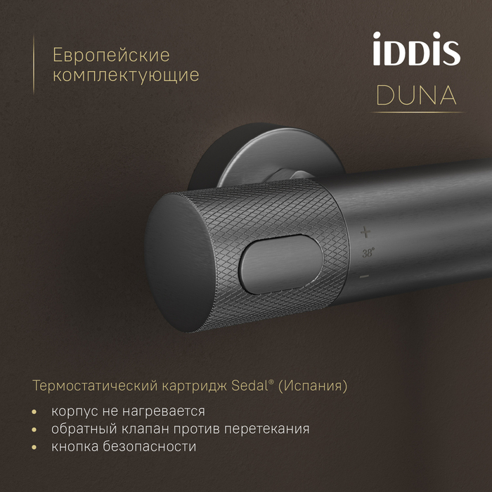 - без риска ожогов: термостатический картридж Sedal® (Испания) обеспечивает стабильную температуру, комфорт и безопасность