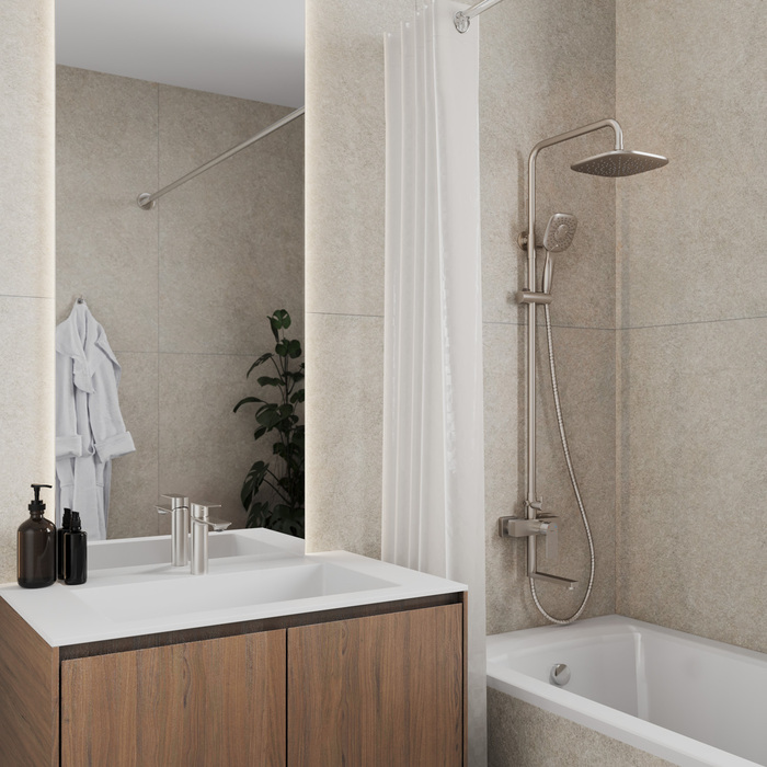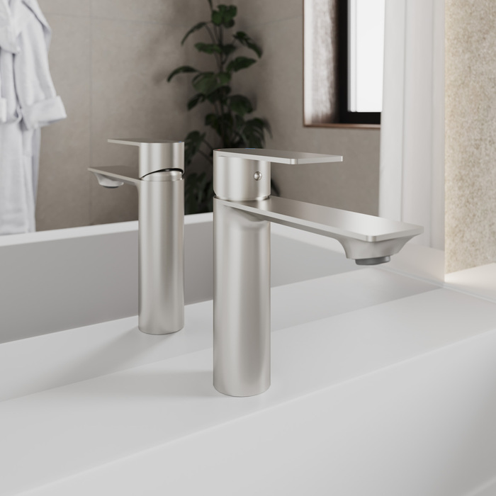 Смеситель для умывальника Maze – отличный способ вписать в интерьер ванной сдержанные геометрические формы. Четкие линии излива гармонично сочетаются с мебелью разных стилей и умывальниками популярных форм: с плавными или угловатыми линиями. Благодаря увеличенному выносу излива вода поступает в наиболее удобную для мытья рук область раковины. Элегантный цвет смесителя достигается за счет брашировки поверхности. Полученный таким способом цвет обладает рядом преимуществ: неприхотливостью в уходе, повышенной устойчивостью к коррозии и образованию следов загрязнения (отпечатки пальцев, пятна, разводы).