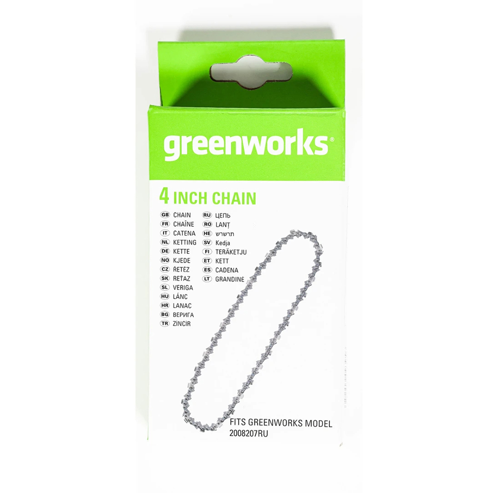 Цепь 10 см Greenworks 2953407 для аккумуляторной цепной мини-пилы Greenworks G24MCS10 24V 2008207 - профессиональный режущий инструмент, обладающий высокой производительностью. Режущие зубья изготовлены из специальной стали.
