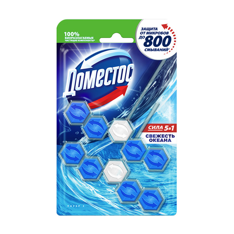 Шарики для унитаза Доместос Power 5 Антиналет Свежесть океана – это эффективное чистящее средство для туалета от налета и неприятного запаха. Шарики обеспечивают защиту унитаза от микробов и загрязнений. Туалетный блок для унитаза от известкового налета оказывает антибактериальный эффект и дает обильную пену. Эта обильная пена борется с налетом, поддерживая гигиену поверхности унитаза.